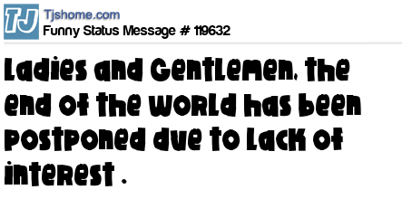 X is Ladies and Gentlemen, the end of the world has been postponed due to lack of interest .