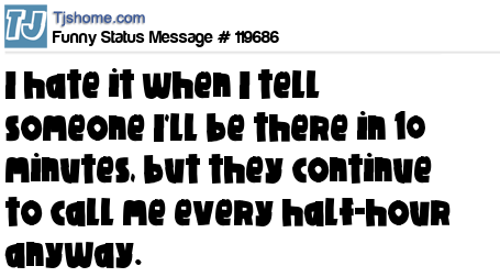 - # 183435 I hate it when I tell someone I'll be there in 10 minutes, but they continue to call me every half-hour anyway