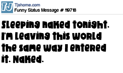 X is Sleeping naked tonight. I'm leaving this world the same way I entered it. Naked.