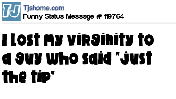 - # 22195 yes I lost my virginity but at least I still have the box it came in!