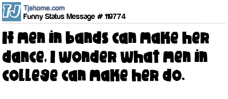 X says If men in bands can make her dance, I wonder what men in college can make her do.