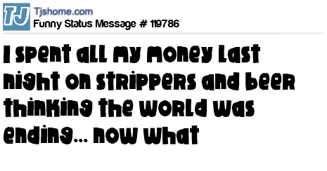 X I spent all my money last night on strippers and beer thinking the world was ending... now what