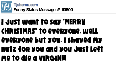 X I just want to say "MERRY CHRISTMAS" to everyone, well everyone but you. I shaved my nutz for you and you just left me to die a VIRGIN!!