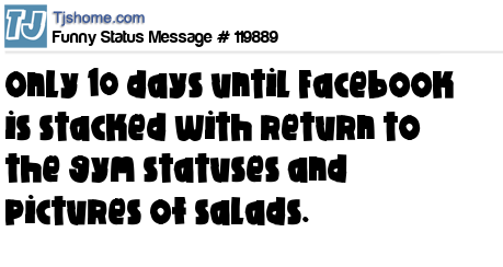 X Only 10 days until Facebook is stacked with return to the gym statuses and pictures of salads.