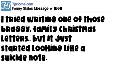 X I tried writing one of those braggy, family Christmas letters,, but it just started looking like a suicide note.