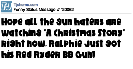 X is Hope all the gun haters are watching "A Christmas Story" right now, Ralphie just got his Red Ryder BB Gun!