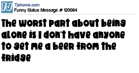 X says The worst part about being alone is I don't have anyone to get me a beer from the fridge