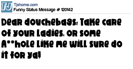 X Dear douchebags; Take care of your Ladies, or some A**hole like me will sure do it for ya!