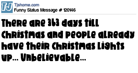 - # 142791 There are 364 days until Christmas and people already have their lights up. Unbelievable.