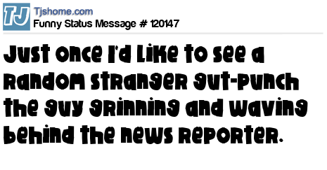 - # 153670 Just once I’d like to see someone dropkick the guy grinning and waving behind the news reporter.