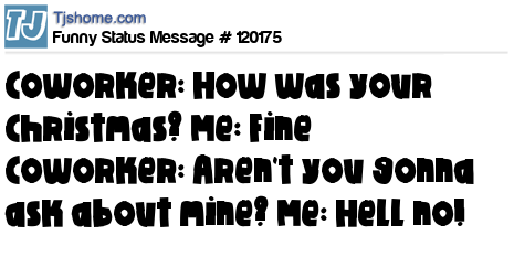 X Coworker: How was your Christmas? Me: Fine Coworker: Aren't you gonna ask about mine? Me: Hell no!