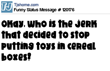 X says Okay, who is the jerk that decided to stop putting toys in cereal boxes?