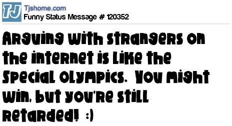- # 61604 Arguing on facebook is like the special olympics, even if you win your still retarded