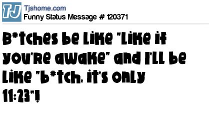 X is B*tches be like "like if you're awake" and I'll be like "b*tch, it's only 11:23"!