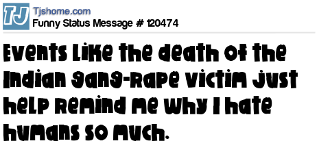 X says Events like the death of the Indian gang-rape victim just help remind me why I hate humans so much.