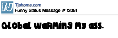 - # 148843 Global Warming would not be a problem if people would stop producing so much hot air complaining about Global Warming.