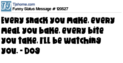 X says Every snack you make, every meal you bake, every bite you take, I'll be watching you. - Dog
