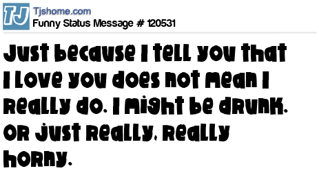X says Just because I tell you that I love you does not mean I really do. I might be drunk. Or just really, really horny.