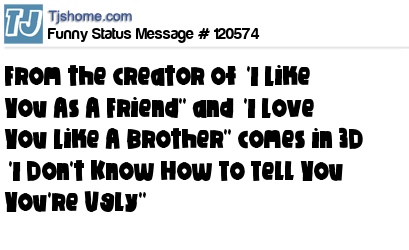 X says From the creator of ‘'I Like You As A Friend'' and ‘'I Love You Like A Brother'' comes in 3D ‘'I Don't Know How To Tell You You're Ugly''
