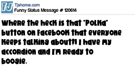 - # 31815 Where the heck is that "Polka" button Facebook that everyone keeps talking about?! I have my accordian and am ready to boogie.
