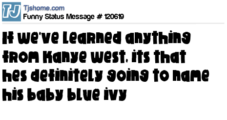 - # 165071 Kanye West should give his baby son back to hospital because he hasn't learned to say "Kanye" yet.