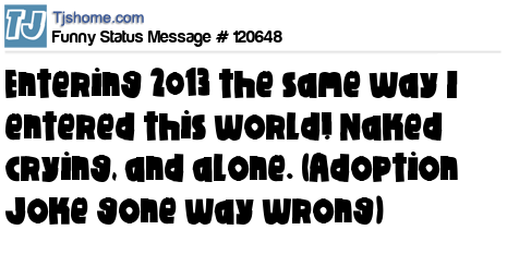 X is Entering 2013 the same way I entered this world! Naked crying, and alone. (Adoption Joke gone way wrong)