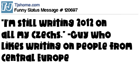 X "I'm still writing 2012 on all my Czechs." -Guy who likes writing on people from Central Europe
