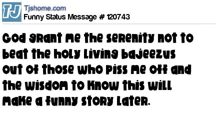 X God grant me the serenity not to beat the holy living bajeezus out of those who piss me off and the wisdom to know this will make a funny story later.