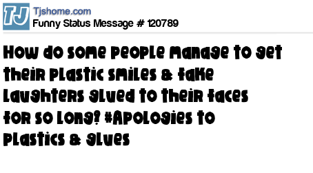 X is How do some people manage to get their plastic smiles & fake laughters glued to their faces for so long? #Apologies to plastics & glues