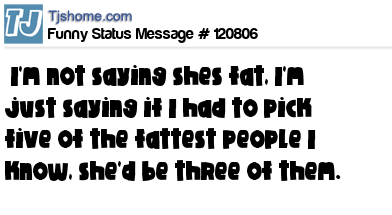 - # 126909 I'm not saying she's fat. I'm just saying if I had to name 5 of the fattest people I know.... She'd be three of them.