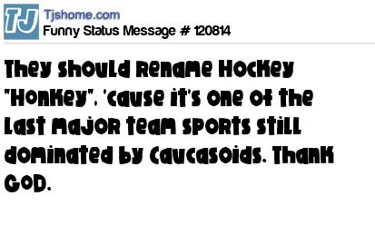 X They should rename Hockey "H0nkey", 'cause it's one of the last major team sports still dominated by Caucasoids. Thank G0D.