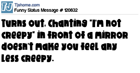 X turns out, Chanting "I'm not creepy" in front of a mirror doesn't make you feel any less creepy.