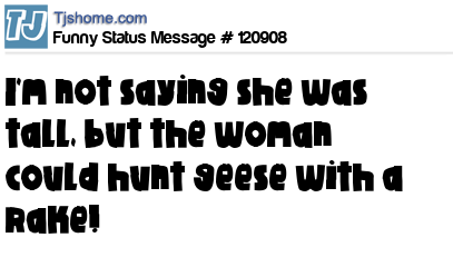 X says I'm not saying she was tall, but the woman could hunt geese with a rake!