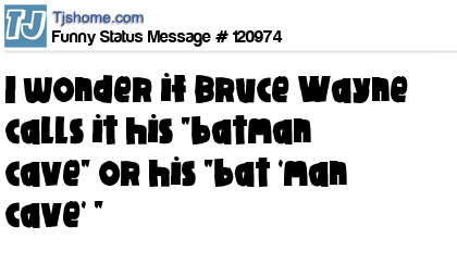 X says i wonder if Bruce Wayne calls it his "batman cave" or his "bat 'man cave' "