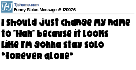 X says I should just change my name to "Han" because it looks like I'm gonna stay solo *forever alone*
