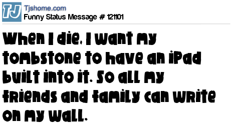 X is When I die, I want my tombstone to have an iPad built into it. So all my friends and family can write on my wall.