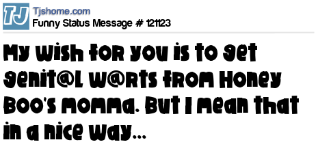 X My wish for you is to get genit@l w@rts from Honey Boo's momma. But I mean that in a nice way...