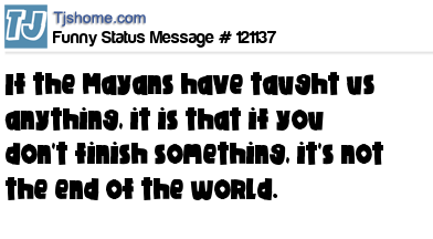 - # 141826 If we learned anything from the Mayans, it’s that if you don’t finish something, it’s not the end of the world