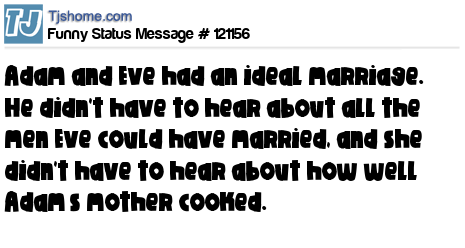 X Adam and Eve had an ideal marriage. He didn't have to hear about all the men Eve could have married, and she didn't have to hear about how well Adam’s mother cooked.