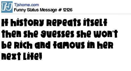 X  if history repeats itself then she guesses she won't be rich and famous in her next life!