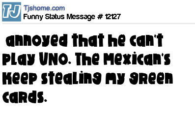- # 166494 Never play Uno with Mexicans they will steal all the green cards.