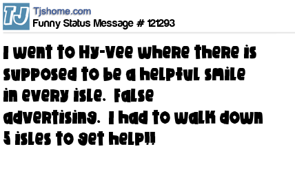 X I went to Hy-Vee where there is supposed to be a helpful smile in every isle. False advertising. I had to walk down 5 isles to get help!!