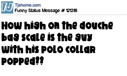 X says How high on the douche bag scale is the guy with his polo collar popped??