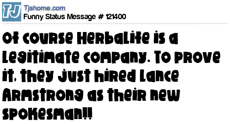 X says of course Herbalife is a legitimate company. To prove it, they just hired Lance Armstrong as their new spokesman!!