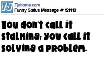 - # 137483 You call it stalking, I call it stalking. SEE HOW MUCH WE HAVE IN COMMON WHY WON'T YOU LET ME LOVE YOU