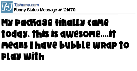 X says my package finally came today. this is awesome....it means I have bubble wrap to play with