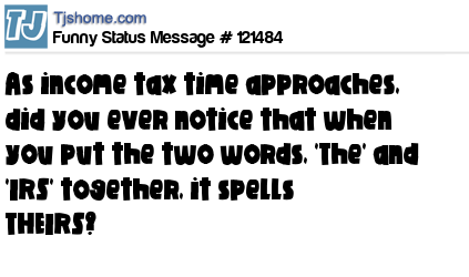 X is As income tax time approaches, did you ever notice that when you put the two words, 'The' and 'IRS' together, it spells THEIRS?
