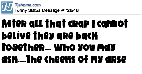X is After all that crap I cannot belive they are back together... Who you may ask....The cheeks of my arse