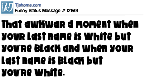 X is That awkwar d moment when your last name is White but you're Black and when your last name is Black but you're White.