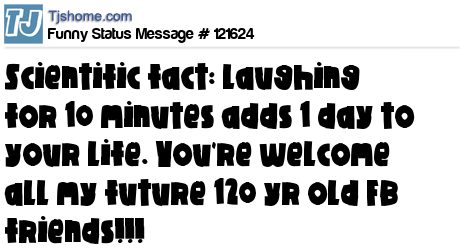 X Scientific fact: Laughing for 10 minutes adds 1 day to your life. You're welcome all my future 120 yr old FB friends!!!
